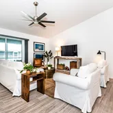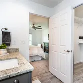 - Interior Features: Cathedral Ceiling(s), Ceiling Fan(s), High Ceilings, Living Room/Dining Room Combo, Open Floorplan, Solid Surface Counters, Thermostat, Walk-In Closet(s)