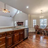 - Kitchen Features: Breakfast Bar, Cabinets Stain, Pantry, Stone Counters, View to Family Room