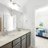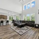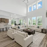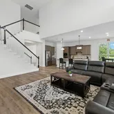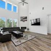 Step into a light-filled two-story living room featuring soaring ceilings and a sleek...Welcome to 216 Tovas Secret Cove, an exceptional 5-bedroom, 3.5-bath Gehan Cornell floor plan nestled in the highly desirable Hidden Oaks section of Berry Creek in Georgetown, Texas. Located on a peaceful cul-de-sac with a 3-car garage and almost 4300 sq ft of thoughtfully designed living space, this home is ideal for growing families, multi-generational households, or those needing extra space to work and play.
