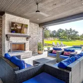 - Exterior Features: Covered Patio/Porch, Garden(s), Rain Gutters, Lighting, Outdoor Grill, Outdoor Kitchen, Outdoor Living Center, Storage