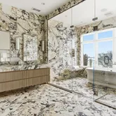 - Room Description: SECOND FLOOR: Dramatic staircase to large landing w/windows, Elevator access, Primary bedroom suite w/gas fireplace & sitting area w/door to balcony w/custom dressing room w/refrigerator drawer & luxurious marble bath w/radiant heat floor w/double sinks/glass enclosed shower w/soaking tub, Bedroom w/ensuite bath w/radiant heat floor w/door to balcony, Bedroom w/ensuite bath w/radiant heat floor w/door to balcony, Bedroom w/ensuite bath w/radiant heat floor w/double doors to glass enclosure, Lounge w/custom shelving w/ensuite bath w/radiant heat floor, Laundry closet, Back staircase to third floor