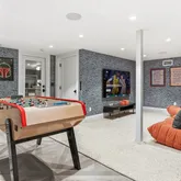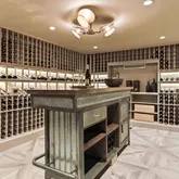 - Room Description: LOWER LEVEL: Lounge/playroom, Home theater w/built-in sofas, Wine storage room, Laundry room w/three washers and dryers, Dog spa, Snack station, Bonus/ping pong room, room w/doors to the grounds & door to 2-car garage w/extra car lift, Elevator access, Storage w/door to garage, Utility rooms, Large unfinished storage, Crawl storage, Garage access