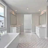- Room Bathroom Features: Shower, Shower in Tub, Double Sinks in Primary Bath, Main Floor Full Bath, Quartz Counters, Upgraded, Walk-in shower