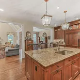 The Lower Level has a stately wet bar with ample seating around the granite counter tops and a mini refrigerator for entertaining ease. Enjoy relaxing, playing billiards and watching your favorite sports. This level can easily accommodate overnight family and friends with a large space that serves as a fourth bedroom - and a luxurious full bathroom. The bedroom space can, also, be converted into a dedicated exercise area. There is also plenty of extra storage.
