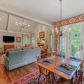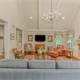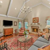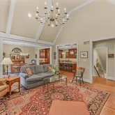 Rounding out the main level are two living spaces - a formal Living Room with loads of natural light, and a large, vaulted Family Room with gorgeous wood beams, as well as a Powder Room and a Mud Room with custom built-in storage.