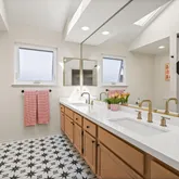 - BATH-PRIMARY INCLUDES: Skylight(s), Solid Surface, Stall Shower, Sunken Tub, Updated Baths, Double Vanity, Granite, Stone, Window