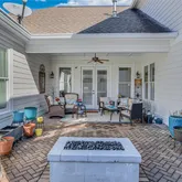 full bathroom, offering comfort and privacy for visitors. With stunning views of the private courtyard, this versatile space could also serve as a dedicated home office, providing a quiet and functional workspace. Upstairs has two additional bedrooms, with ensuite baths, making them ideal for family members or guests. A large loft area serves as a flexible living space, perfect for a secondary living room, media room, or study. With its open layout and abundant natural light, this upper level provides a private yet connected space for relaxation and entertainment. The private courtyard offers a charming outdoor retreat perfect for relaxation and entertaining. The brickpaved patio extends from the covered porch, creating a seamless flow between indoor and outdoor living. A built-in fire pit serves