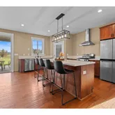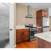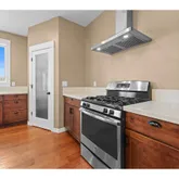 - Kitchen Appliances: Free Standing Range, Free Standing Refrigerator, Island, Quartz, Range Hood, Stainless Steel Appliance
