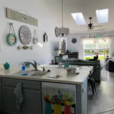 - Interior Features: Breakfast Bar, Ceiling Fans, Cathedral Ceilings, Separate Formal Living Room, Great Room, Jetted Tub, Kitchen Family Room Combo, Pantry, Sliding Glass Doors, Storage, Skylights, Window Treatments, Bedroom On Main Level, Main Level Primary, Primary Suite, Workshop