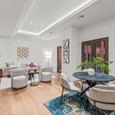 Residents of The Estate Homes at Parc Rittenhouse benefit from exclusive access via two secure elevators serving just 20 residences, offering direct entry to the garage, lobby, and amenities floor. These units enjoy the same amenities as other Parc Rittenhouse residents, including a 24-hour doorman and concierge service, a landscaped 7th-floor rooftop with an outdoor pool, spa, children's pool, and a sundeck with lounge chairs. Additionally, there is a brand new state-of-the-art fitness center, a conference room, and a media room.
