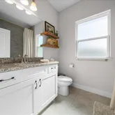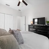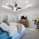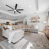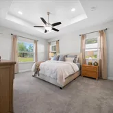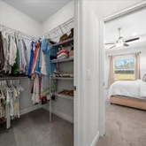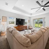 - Interior Features: Ceiling Fan(s), High Ceilings, Kitchen/Family Room Combo, Solid Wood Cabinets, Stone Counters, Thermostat, Window Treatments
