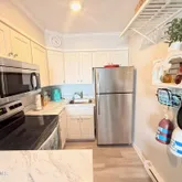 - Appliances: Built-In Microwave, Refrigerator, Electric Range