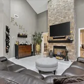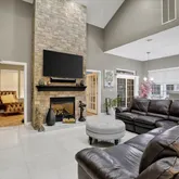 - Living Room: Dec Molding, Floor - Porcelain, Two Story, TRY/VLT/CATH, Fireplace - Gas