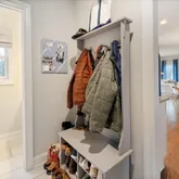 - RoomDescription: Mudroom area, Tile flooring, Quartz countertop above W/D
