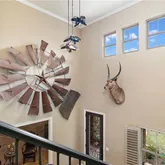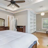 - Interior Features: BreakfastBar, BuiltInFeatures, CeilingFans, Chandelier, DiningArea, SeparateFormalDiningRoom, DoubleVanity, EntranceFoyer, GameRoom, HighCeilings, HomeOffice, PrimaryDownstairs, MultipleDiningAreas, MainLevelPrimary, OpenFloorplan, SeeRemarks, SoakingTub, SeparateShower, TubShower, Vanity, WalkInClosets