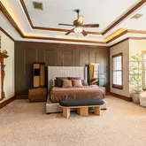 - Interior Features: Breakfast Bar, Butlers Pantry, Crown Molding, Double Vanity, Entrance Foyer, High Ceilings, Kitchen Island, Kitchen Family Room Combo, Bath In Primary Bedroom, Pantry, Soaking Tub, Tub Shower, Window Treatments, Ceiling Fans, Programmable Thermostat