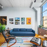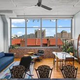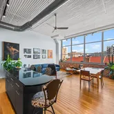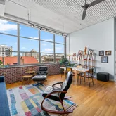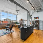 The Larkin provides exceptional amenities, including 24/7 security...Welcome to The Larkin at 2200 Arch St. This Northeast corner residence offers a rare combination of volume, light, and character. With two exposures and walls of oversized windows, this home is drenched in natural light throughout the day and enjoys unmatched views around the clock. Exposed brick and soaring ceilings lend authentic loft appeal, while the open great room allows for flexible living, dining, and entertaining layouts.
