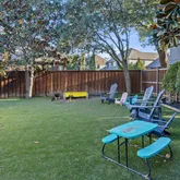 - Exterior Features: Attached Grill, Built-in Barbecue, Covered Patio/Porch, Rain Gutters, Lighting, Outdoor Grill, Outdoor Kitchen, Outdoor Living Center, Putting Green