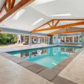 - Features: Bath Off Primary, Double Pane/Storm Window, Dining Room, Elevator, Fireplace, Fireplace (Primary Bedroom), High Tech Cabling, Indoor Pool, Security System, Skylight(s), SMART Wired, Sprinkler System, Vaulted Ceiling(s), Walk-In Closet(s), Walk-In Pantry, Wine/Beverage Refrigerator, Wired for Generator