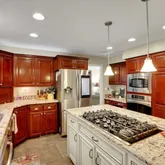 - Appliances: Water Softener, Range, Indoor Grill, Gas Range, Dishwasher, Refrigerator, Disposal, Trash Compactor, Microwave, Hard Surface Counters