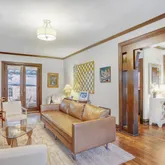 The sun-filled living and dining rooms welcome you with rich original details, including stunning built-ins with leaded glass doors, classic plate rails and crown molding,— each element telling the story of the home’s heritage while creating a warm and timeless setting for gathering and entertaining.