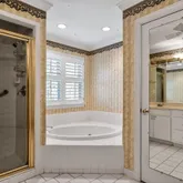 - Interior Features: Bathtub/Shower Combination, Bookcases, Ceiling Fan(s), Central Vacuum, Chandelier, Crown Molding, Double Vanity, Dumbwaiter, Eat-in Kitchen, Entrance Foyer, Granite Counters, High Ceilings, Living/Dining Room Combination, Quartz Counters, Recessed Lighting, Separate Shower, Smooth Ceilings, Walk-In Closet(s), Whirlpool Tub