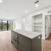 This residence is a generously scaled one-bedroom/study without compromise. An expansive open Italkraft kitchen with state-of-the-art Bosch appliances and upgraded pantry wall seamlessly flows to a formal dining area and living room with oversized windows bringing in plenty of natural light. A private covered terrace allows for a dining table or lounge seating facing South to the green space and creek. The dedicated study allows additional space for a home office, fitness area, reading nook, and more. The four-fixture bath is one of a kind with a customized shower with bench seating. The entire residence features Oak Oak’s exclusive dramatic design scheme. Brand new, ready for closing soon, and your entrance into Austin’s most coveted condominium community. Washer/dryer and refrigerator are included in sale.