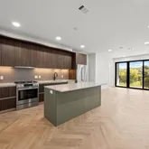 Residence 334 at One Oak is a rare opportunity to buy into this highly desirable development. This third-floor residence is the ultimate 2 bedroom layout with an additional versatile study space, which can accommodate a home office or additional storage, a blank canvas for your everyday needs. An expansive open Italkraft cabinetry kitchen with state-of-the-art Bosch appliances opens to the spacious living room, complete with oversized windows bringing in plenty of natural light. A private patio spans the length of the unit, with views of the amenity courtyard, creek, and manicured path. The large primary bedroom allows additional space for a fitness area, reading nook, and more. A true five-fixture primary bath features a dual vanity, soaking tub, walk-in glass shower and massive walk-in closet. The second bedroom is the perfect size with access to another full-bath. The entire residence features Oak Oaks exclusive Dramatic design scheme with two-tone cabinet finishes. Brand new, ready for closing, and your entry into Austin’s most coveted condominium community. Light photos are of model #234 with Classic color palette (also available for purchase). Unit #334 has dramatic color palette with herringbone floors. Same view.
