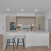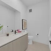 Inside, the open-concept layout is defined by soaring 10 ft ceilings and floor-to-ceiling windows that fill the home with natural light. The thoughtfully designed floor plan includes three spacious bedrooms and three full bathrooms. The chef-inspired kitchen features custom Italkraft cabinetry, sleek quartz countertops, and a premium Bosch appliance package, offering the perfect balance of style and performance.