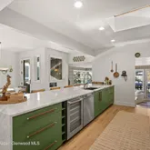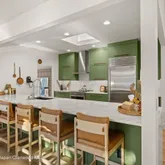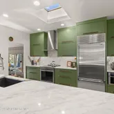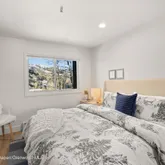 The interior features new flooring throughout the house, fresh paint, and a stunning chef's kitchen appointed with Italian marble countertops and a Sub-Zero refrigerator. An open, light-filled floor plan and two private patios create inviting spaces for gathering with family and friends. The fourth bedroom is undergoing final steps for legal conforming status.''