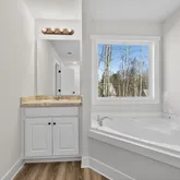 - Interior: Tray Ceiling(s), Vaulted Ceiling(s), Double Vanity, Soaking Tub, Pulldown Attic Stairs, Separate Shower, Walk-In Closet(s), Master On Main Level