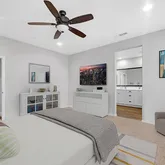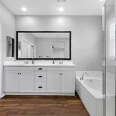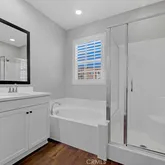 - Room Bathroom Features: Shower in Tub, Closet in bathroom, Double Sinks in Primary Bath, Exhaust fan(s), Quartz Counters, Separate tub and shower, Upgraded, Vanity area, Walk-in shower