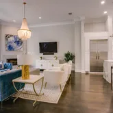 Inside, this home blends comfort and sophistication across multiple levels. Easily navigated by a private elevator. The open-concept main floor is perfect for entertaining, featuring a light-filled living room, elegant dining space, and an award winning gourmet kitchen with designer appliances, sleek cabinetry, and an expansive island.