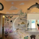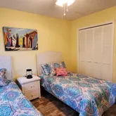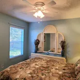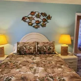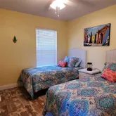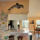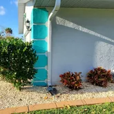 Mural of the ocean with sea turtles, dolphins, and a Mermaid. This house can be rented short-term and has room for a pool. So great 2nd home to rent out when you are not living here to offset your cost of taxes mortgage or great investment property. It has beautiful landscaping, new fencing, stamped concrete curving, stone for low maintenance, tropical plants, and palm trees. A shed, irrigation system, and beautiful lush lawn. Move-in ready or turnkey rental. Large oversize 2-car garage with pin pad. Just a well-maintained beautiful home.