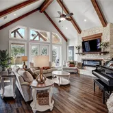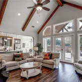 - Interior Features: AllBedroomsDown, BeamedCeilings, Bookcases, BuiltInFeatures, CeilingFans, CarbonMonoxideDetector, CrownMolding, CathedralCeilings, DiningArea, CofferedCeilings, SeparateFormalDiningRoom, DoubleVanity, EntranceFoyer, GameRoom, GardenTubRomanTub, HighCeilings, HomeOffice, PrimaryDownstairs, MultipleDiningAreas, MainLevelPrimary, MultipleClosets