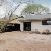 In front, the carport does double duty: dedicated laundry room plus a built-in desk that works well as a home office, studio, or just a place to keep things organized. The backyard is xeriscaped and fully fenced, genuinely low maintenance.