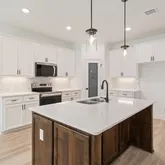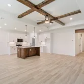 - Interior Features: AllBedroomsDown, BeamedCeilings, BuiltInFeatures, CeilingFans, CrownMolding, DoubleVanity, EntranceFoyer, HighCeilings, OpenFloorplan, PullDownAtticStairs, RecessedLighting, SplitBedrooms, SeparateShower, WalkInClosets, BreakfastBar, BreakfastArea, CustomCabinets, GraniteCounters, KitchenIsland, KitchenFamilyRoomCombo, KitchenDiningCombo