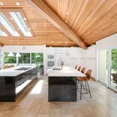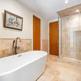 - Interior Features: First Floor Bedroom, First Floor Full Bath, Beamed Ceilings, Breakfast Bar, Cathedral Ceiling(s), Central Vacuum, Chefs Kitchen, Double Vanity, Eat-in Kitchen, Entrance Foyer, High Ceilings, In-Law Floorplan, Kitchen Island, Open Floorplan, Open Kitchen, Quartz/Quartzite Counters, Recessed Lighting, Sauna, Soaking Tub