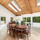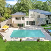 - Amenities: 1st Floor Bedrm, Beamed Ceilings, Breakfast Bar, Cathedral/Vaulted/High Ceiling, Central Vacuum, Chefs Kitchen, Contemporary, Double Vanity, Eat in Kitchen, Entrance Foyer, First Floor Full Bath, High Ceilings, In Ground, In-Law Floorplan, Indoor, Kitchen Island, Open Floorplan, Open Kitchen, Other, Outdoor Pool, Quartz/Quartzite Counters, Recessed Lighting, Sauna, Soaking Tub, Wood, Wood Burning