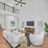 - Interior Features: Double Vanity, Entrance Foyer, High Ceilings, Kitchen Island, Kitchen Family Room Combo, Pantry, Quartz Counters, Soaking Tub, Separate Shower, Walk In Pantry, Ceiling Fans, Loft, Programmable Thermostat