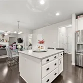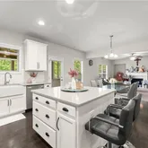 - Kitchen Features: Breakfast Room, Cabinets White, Eat-in Kitchen, Kitchen Island, Other Surface Counters, Pantry Walk-In, Solid Surface Counters, View to Family Room