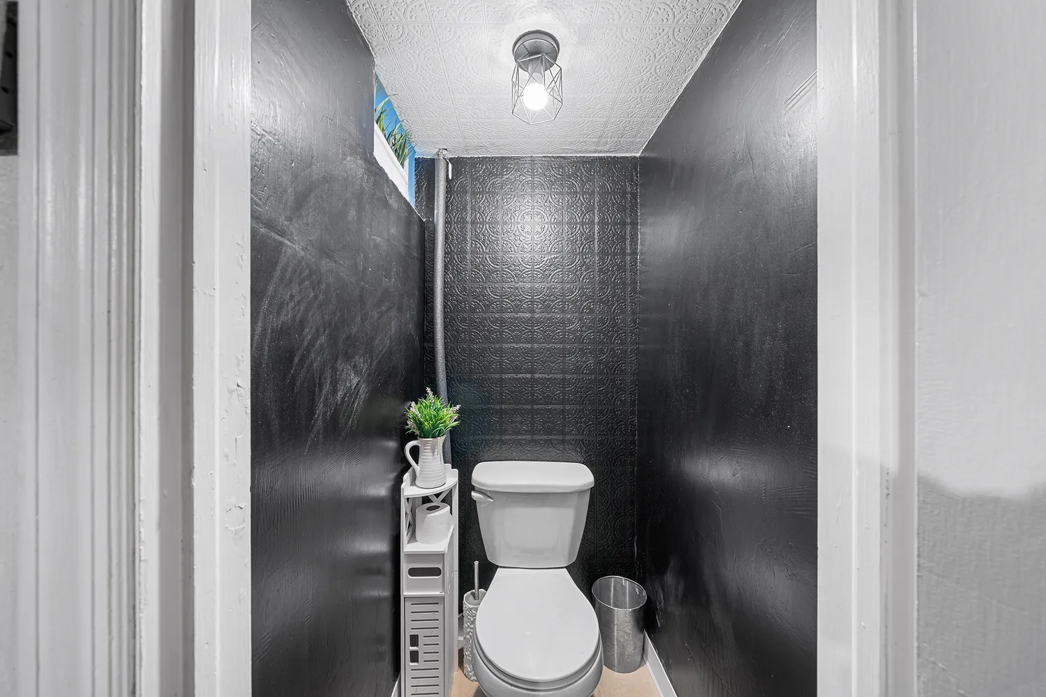 Through the kitchen, you’ll find access to the basement, which offers a half bath, unfinished living space, a laundry area, and access to the outside. From the rear of the home, enjoy a private driveway and garage—perfect for parking or additional storage.