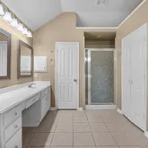 - Interior Features: Breakfast Bar, Double Vanity, High Ceilings, Jetted Tub, Kitchen Family Room Combo, Solid Surface Counters, Soaking Tub, Separate Shower, Tub Shower, Vanity, Living/Dining Combo