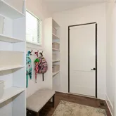appliances, including a wall oven, pot filler, and 5-burner gas cooktop. The kitchen connects effortlessly to the family room, where a striking horizontal digital fireplace adds warmth and visual interest, and doors lead to a serene screened porch overlooking peaceful, tree-lined views. The main level is both functional and flexible, featuring a dedicated room well suited for a home office, playroom, or library, along with a formal dining area ideal for hosting gatherings. A walkin pantry and mudroom provide everyday convenience without sacrificing style. Upstairs, a wide hallway enhances the flow and leads to two generously sized secondary bedrooms, each with a private en-suite bath, along with the owner's suite, creating a well-defined