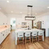 - Kitchen Features: Cabinets White, Kitchen Island, Pantry, Pantry Walk-In, Stone Counters, View to Family Room