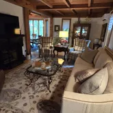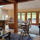 stunning family room, looking onto an expansive patio, bringing nature inside. This serene