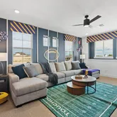 The Hattie offers a flexible two-story layout designed for everyday comfort and connection. The foyer leads to a private front bedroom with a walk-in closet, a nearby full bathroom, and a conveniently located utility room. On the opposite side, you’ll find access to the garage, keeping daily routines organized and efficient. Continuing through the home, the layout opens into a vaulted family room with a fireplace, filled with natural light and connected to the dining area by the kitchen at the center. The kitchen features an island and a walk-in pantry, creating a functional space for cooking and gathering. The dining area provides access to the covered outdoor living space and sits near the staircase to the second floor. The primary bedroom is tucked off the family room and features tray ceilings, leading into an ensuite bath with separate vanities, a free-standing soaking tub, a walk-in shower, and a spacious walk-in closet. Upstairs, a large game room offers additional living space and includes a storage closet and a dedicated tech center. Two secondary bedrooms, each with walk-in closets, are located nearby along with a full bathroom featuring dual vanities. Visit our model and ask about current buyer incentives!