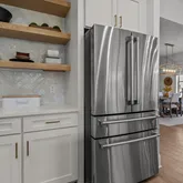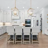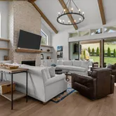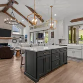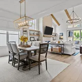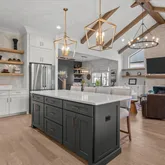 From the moment you step inside, the home’s intentional layout becomes immediately clear. The main living spaces flow effortlessly, creating an inviting atmosphere ideal for both daily routines and large gatherings. The Chef’s Kitchen serves as the heart of the home, featuring high-end appliances, generous counter space, and a beautifully organized walk-in pantry. This culinary space opens seamlessly into a warm and welcoming Family Room accented by striking exposed beams, adding both architectural character and a sense of openness.