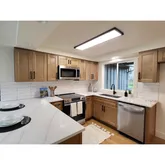- Kitchen Appliances: Dishwasher, Disposal, Free Standing Range, Microwave, Quartz, Range Hood, Solid Surface Countertop, Stainless Steel Appliance, Tile