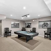 The walk-out basement is truly an entertainer’s dream, offering direct pool access, a massive custom bar with ice maker, commercial-grade beer refrigerators, dishwasher, and sink. Additional highlights include a pool table/game area, a private gym or office space, and a stylishly updated full bathroom.